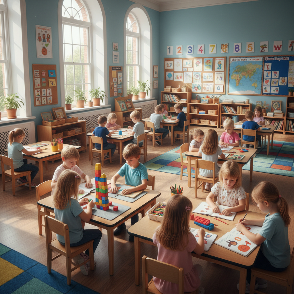 The Primary classroom is the heart of the Montessori experience. Children aged 3–6 work in a mixed-age environment with over 200 specially designed materials. Reading, writing, and mathematics emerge naturally through hands-on exploration rather than direct instruction, building deep conceptual understanding.